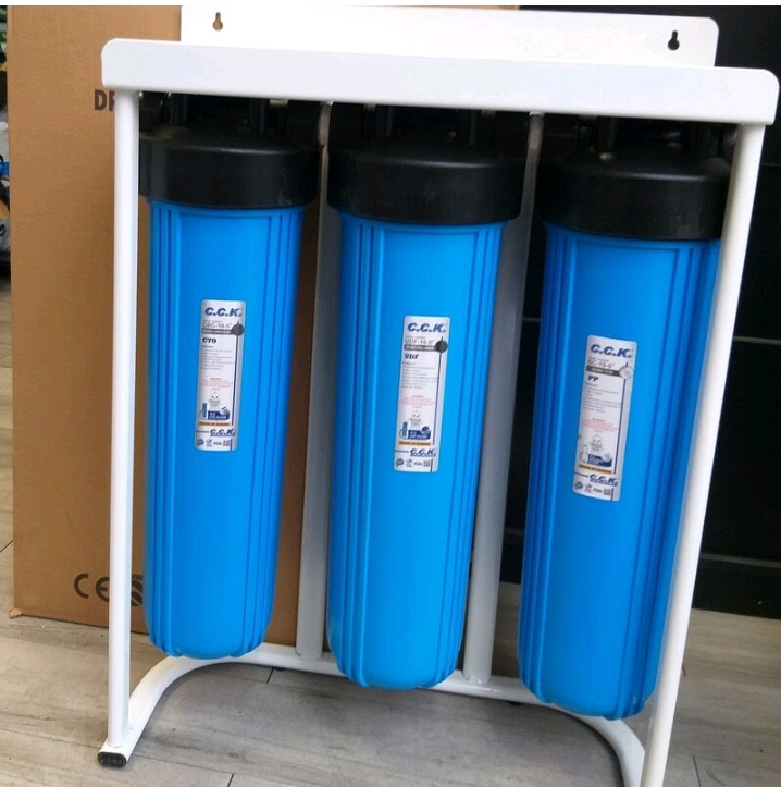 پیش تصفیه جهت حذف ذرات معلق در حد یک میکرون و حذف کلر و بو و طعم و مزه که با توجه به نیاز مصرف کننده میتوان فیلتر هارا تغییر داد