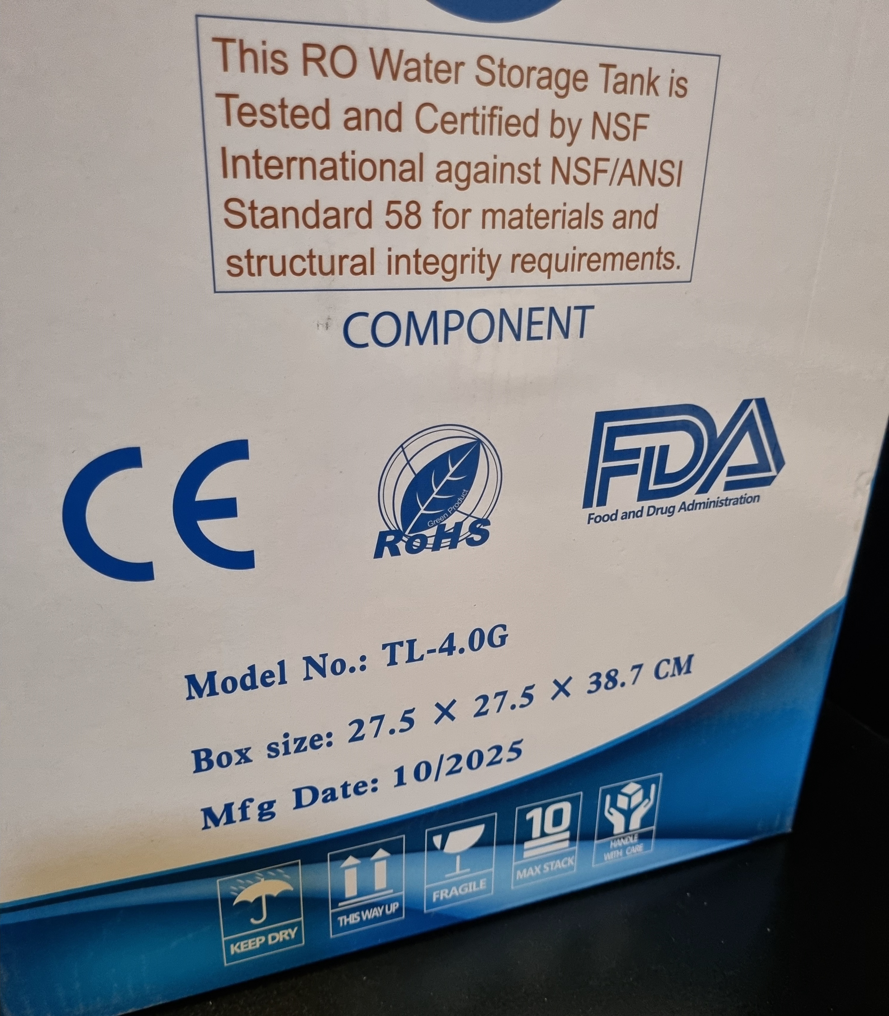 مخزن 4.0 G گالن وارداتی TANKLIFE اصلی سنگین ✅️دارای استاندارد واقعی NSF و FDA و CE ✅ فود گردید بدون بو ✅ کارتن رنگی ✅ دارای گارانتی و ضمانت یکساله ✅کیفیت عالی و قیمت استثنایی ✅همراه با شیر مخزن